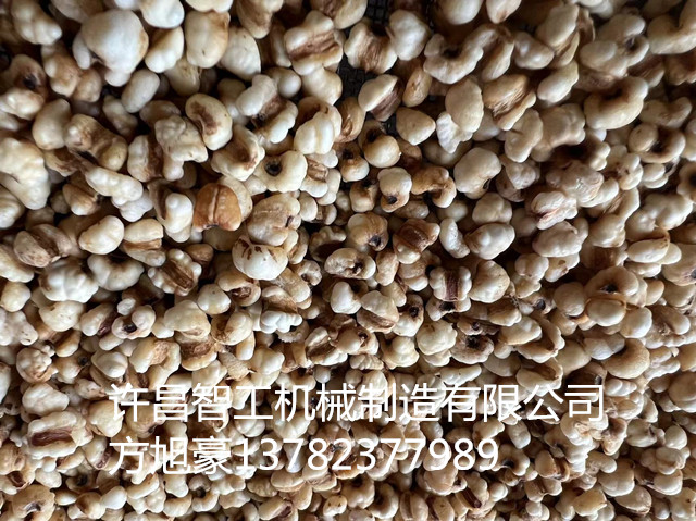 2024年7月11日,安徽客户带来薏仁米来厂试机炒制。 现场将薏仁米泡制,蒸煮,烘干最后再用小型电磁炒货机炒制,炒出的薏仁米个个膨化,焦香酥脆